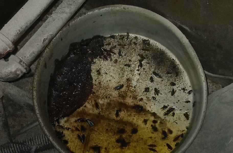 De manera alarmante, se evidenció un contenedor con aceite lleno de cucarachas muertas, así como la presencia de objetos peligrosos como navajas de afeitar cerca de los equipos, lo que incrementa significativamente el riesgo para los consumidores.