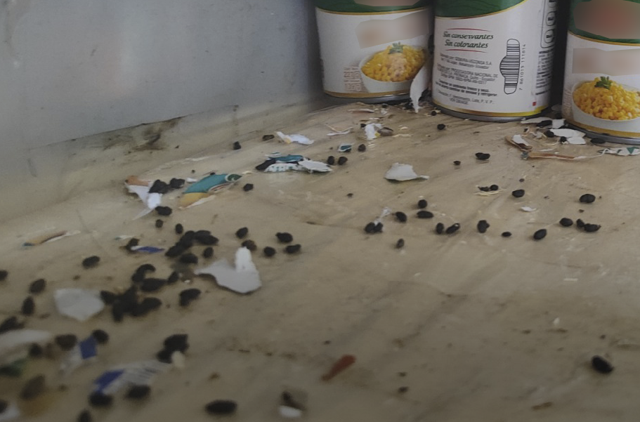 La situación se agrava aún más con el hallazgo de heces de roedores junto a alimentos perchados, lo que constituye una amenaza directa de contaminación y posibles enfermedades para los consumidores.