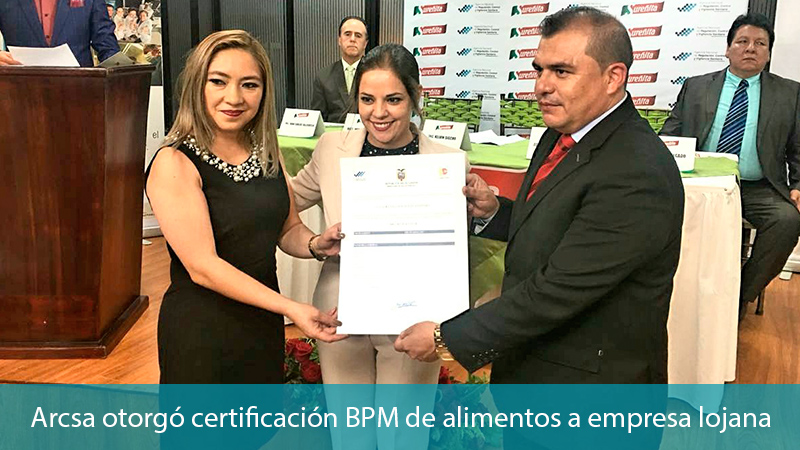 Arcsa otorgó certificación BPM de alimentos a empresa lojana