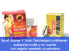 Sport Burner Y Toxin Discharged continenen sustancia oculta y no cuenta con registro sanitario ecuatoriano